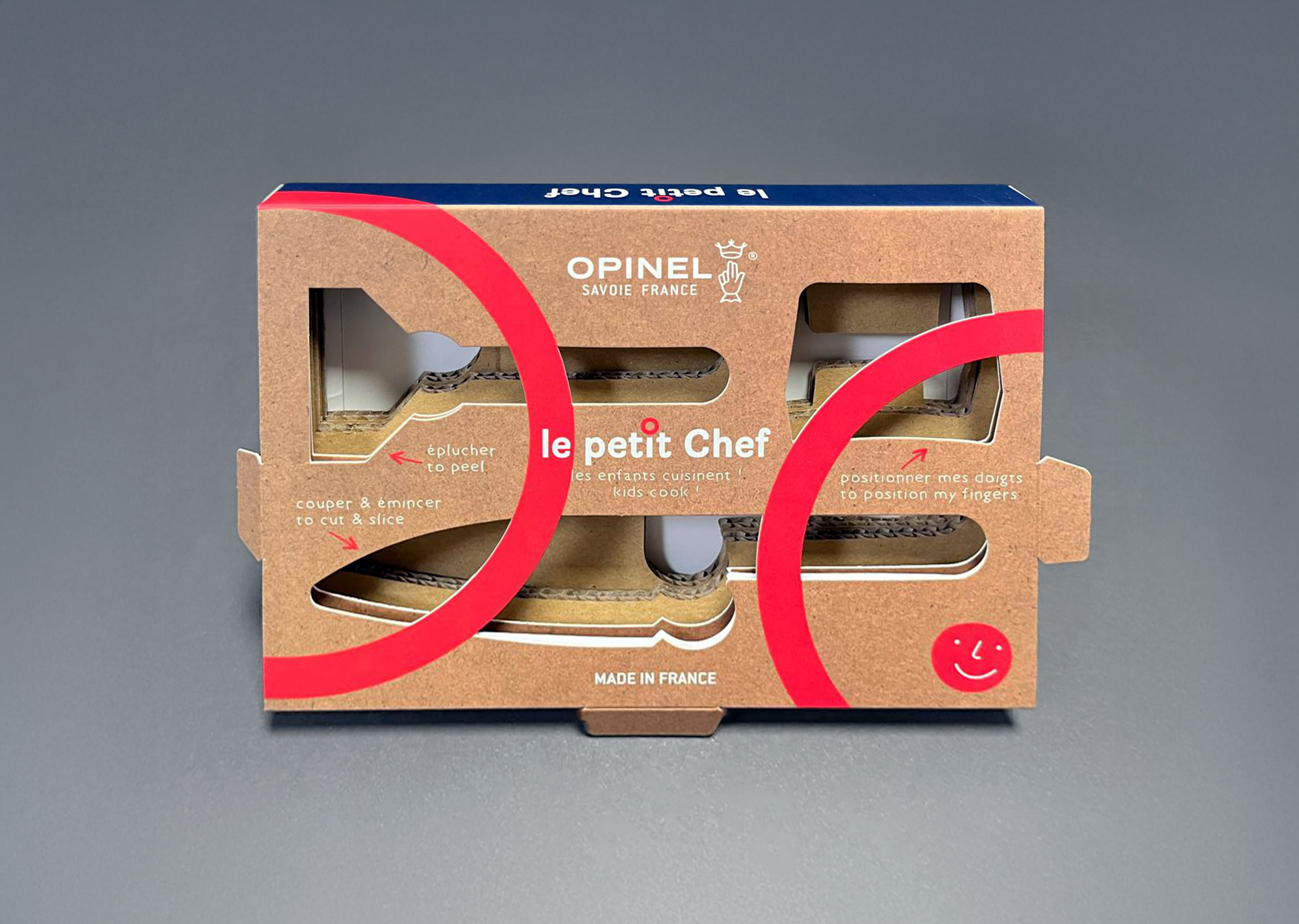 La colección Petit Chef de Opinel es un referente internacional en la enseñanza de la cocina infantil, y nuestro trabajo en el packaging pone en valor la calidad, ergonomía y seguridad de sus productos.